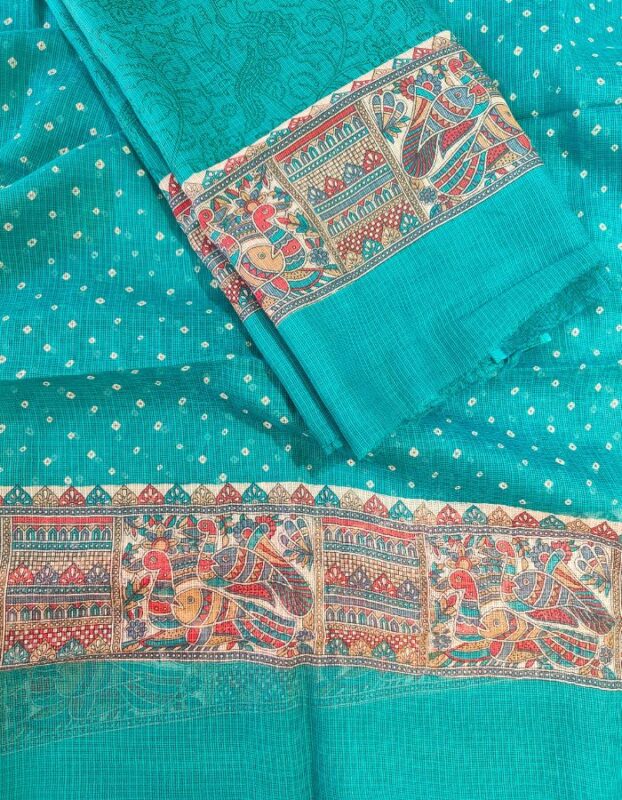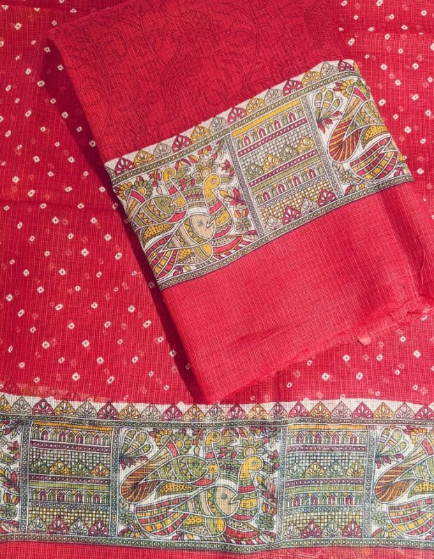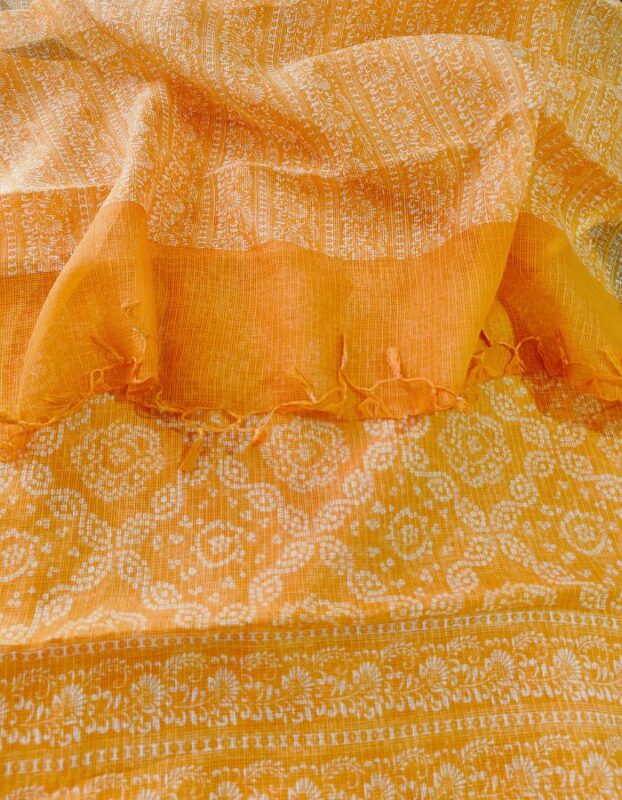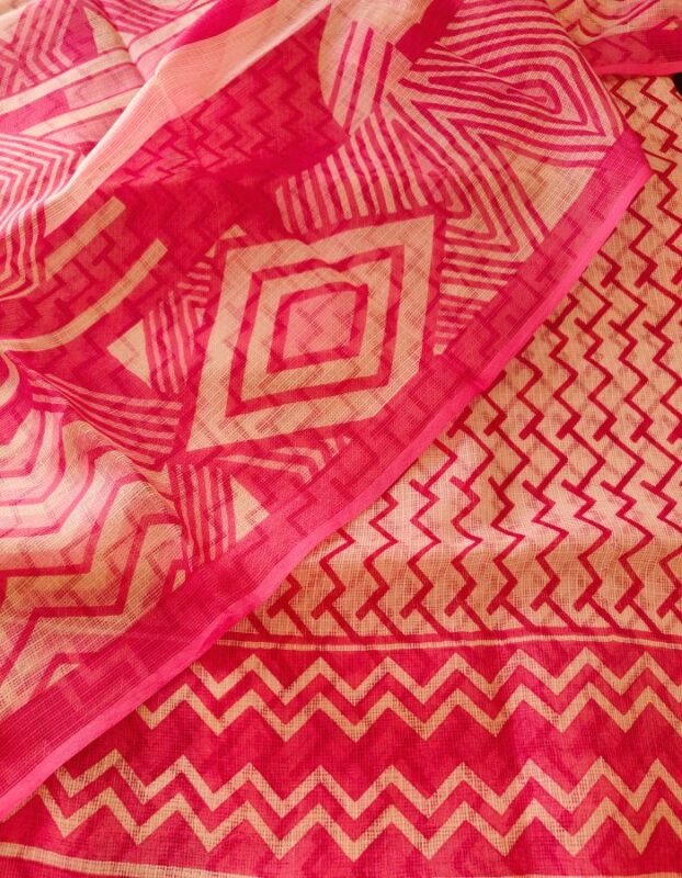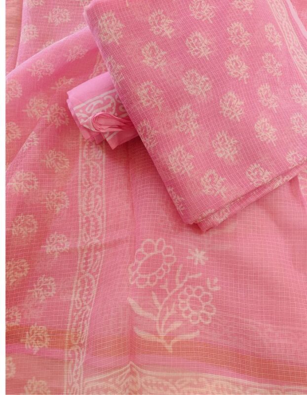 Kota Doria 3 piece suit with Block Print