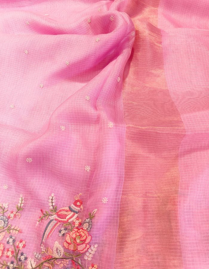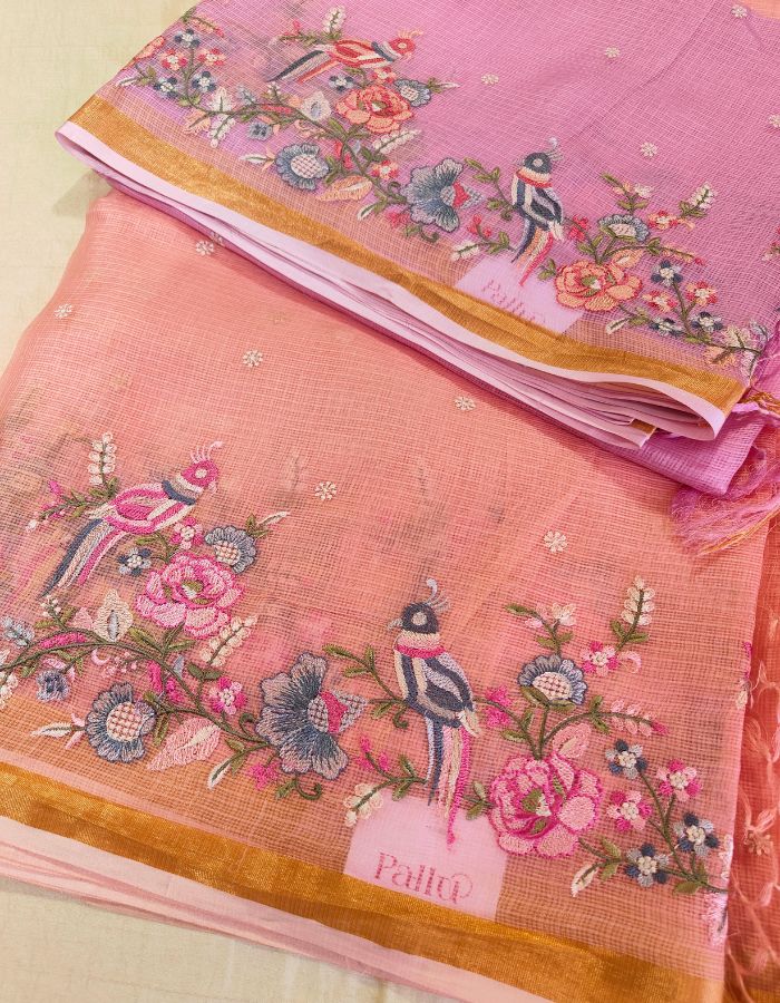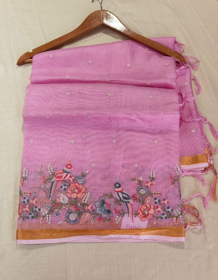 Kota doria Embroidery Motifs Saree with Scallop Border